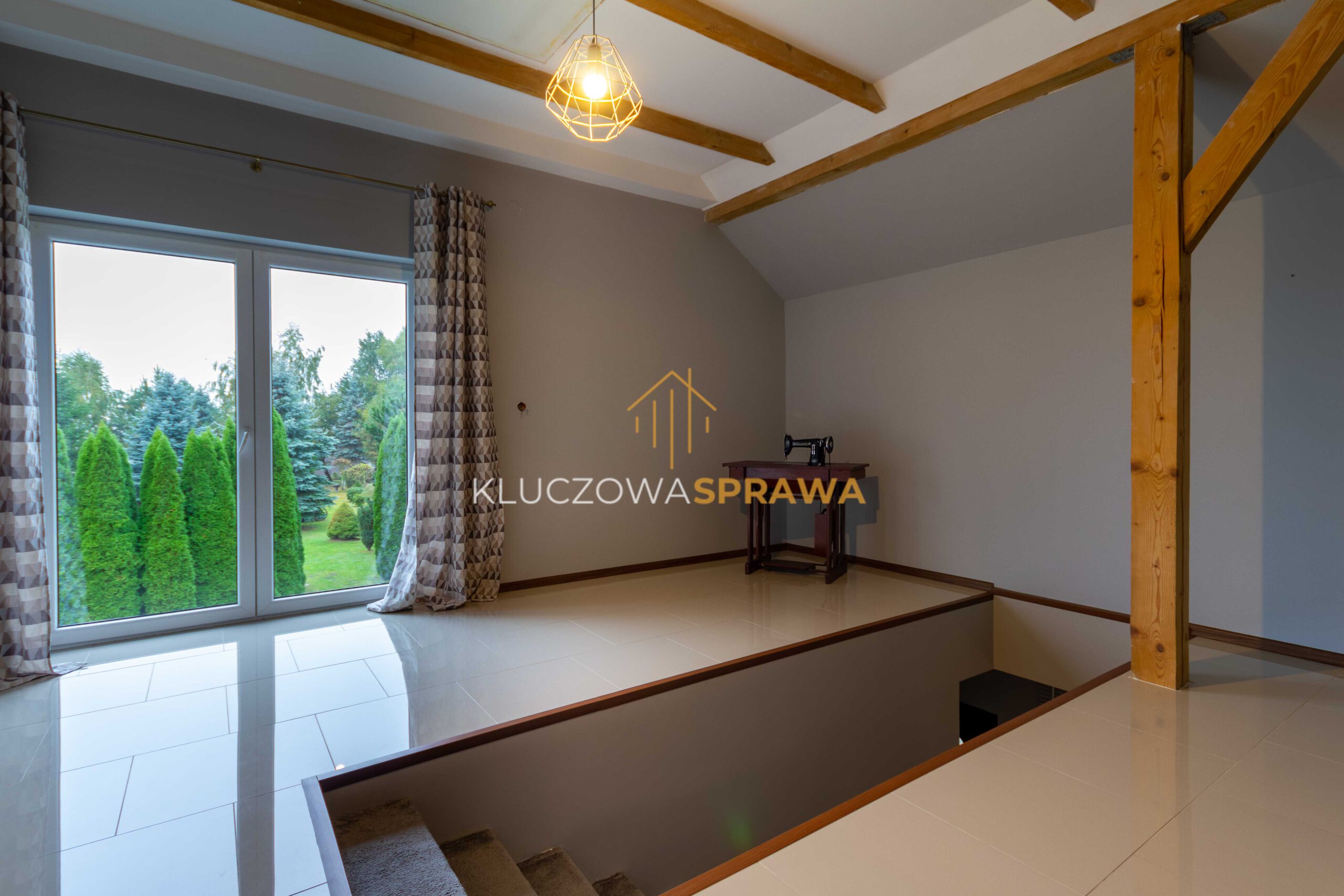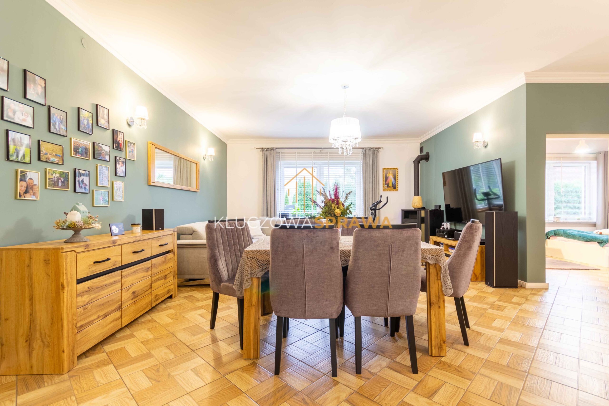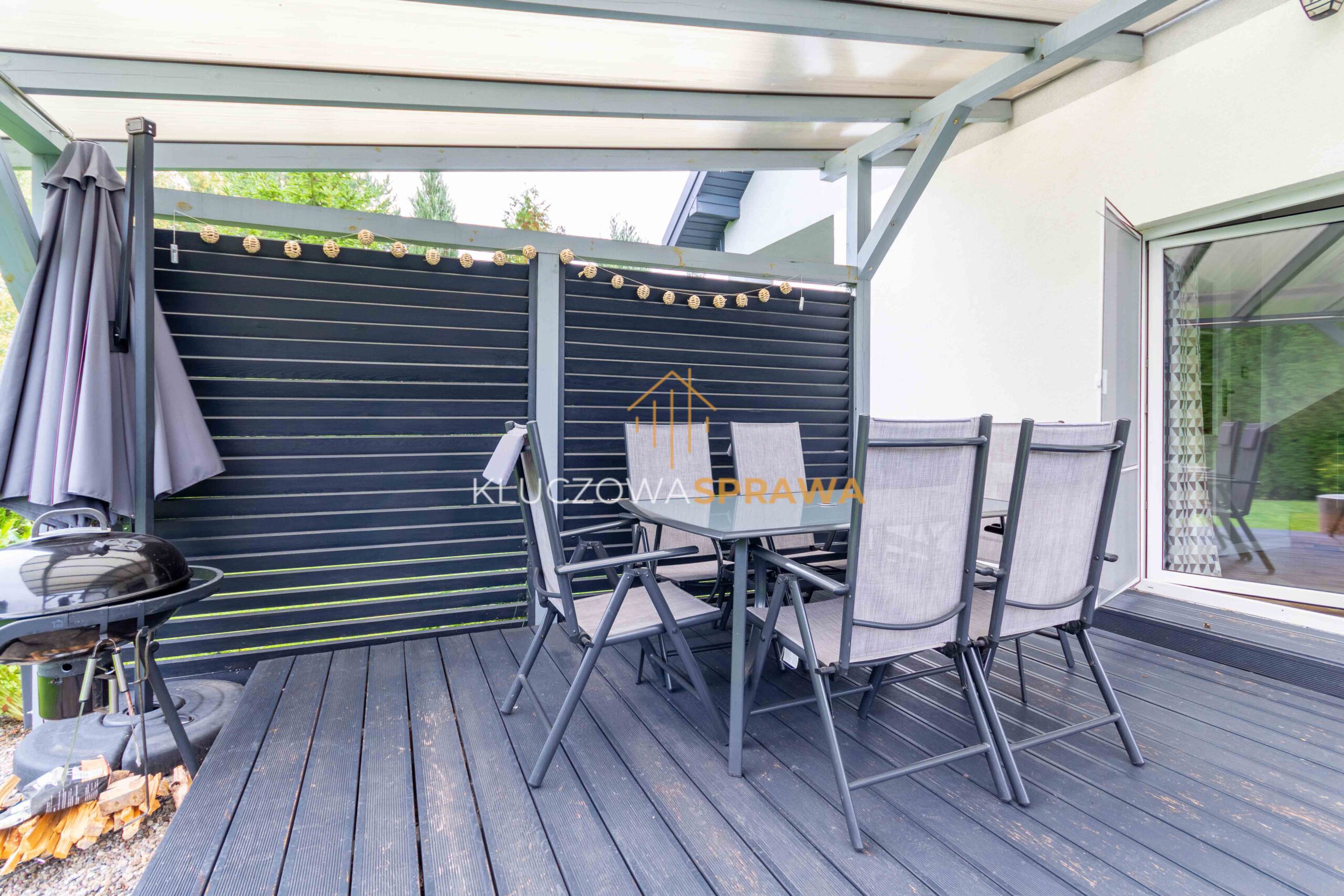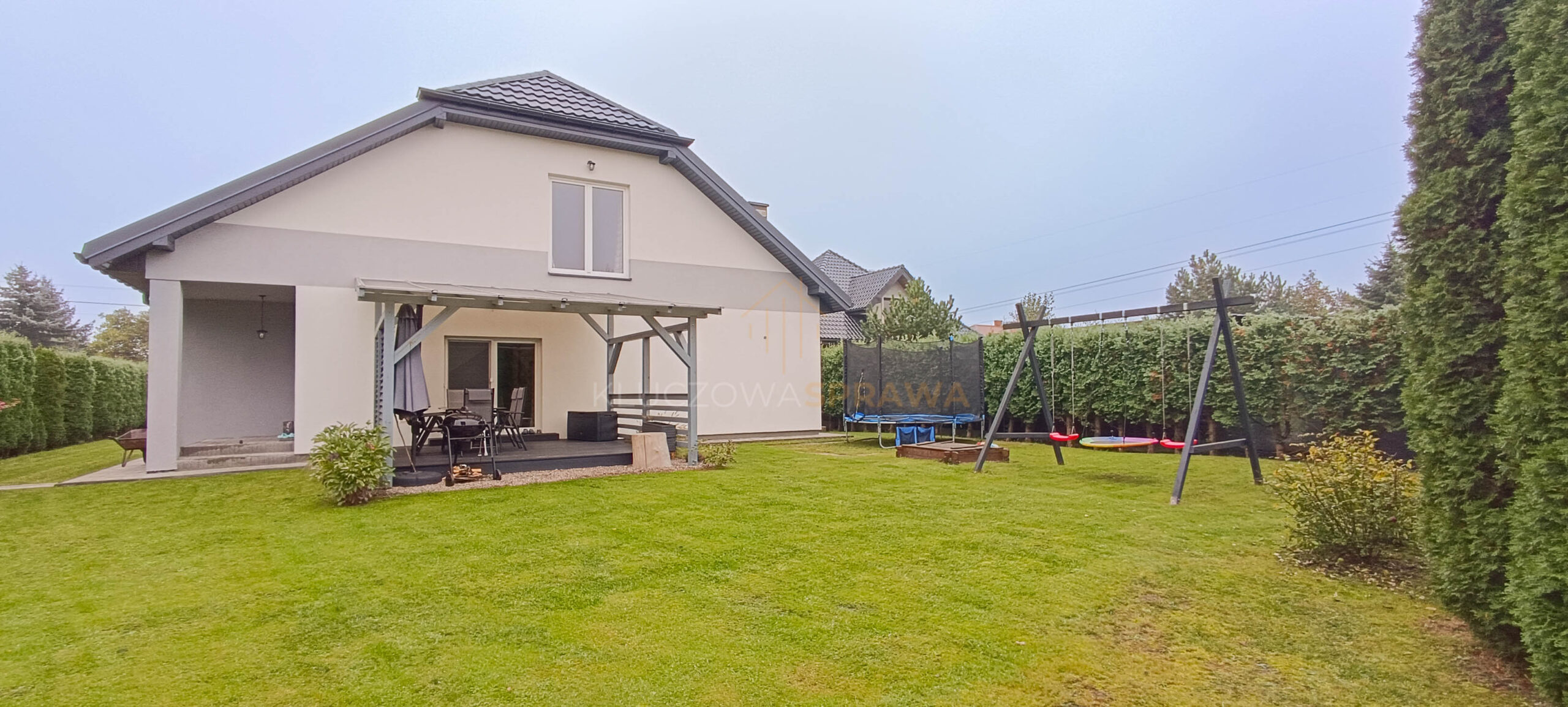 10 pokoi | duża zadbana działka | garaż 2 stanowiska | taras | 320 m2,Dom położony jest na malowniczej działce otoczony niską i wysoka zielenią. Przez duży taras wychodzimy na ogród, w którym znajdują się zaaranżowane miejsce na ognisko, bujaczki oraz dużo miejsca do zabawy dla dzieci.