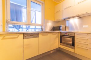 - w pełni wyposażona kuchnia otwarta na salon (aktualnie oddzielona ścianką g-k),